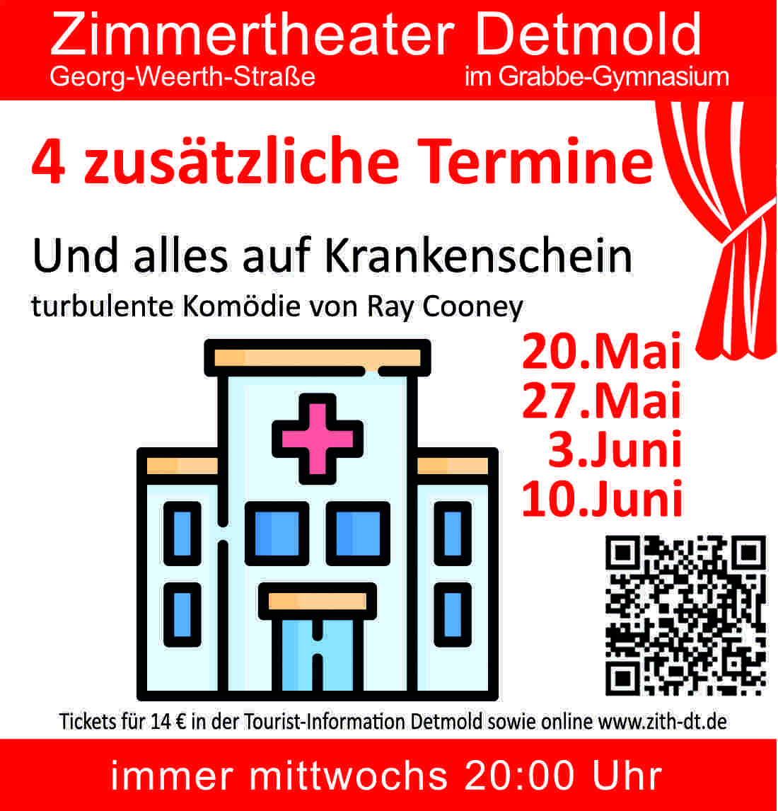 Die Mitglieder des Zimmertheaters in Detmold freuen sich, dass ihr Ensemble einigen Nachwuchs erhalten hat. Ganz besonders der junge Nachwuchs ist wichtig, um viele Stücke besetzen zu können. So war die Zusage des 18 jährigen Luis Anlass, endlich die Komödie „Und alles auf Krankenschein“ auf die Bühne zu bringen.
